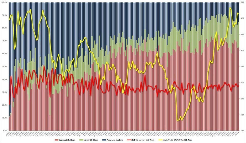 作为承接所有未购买供应的“接盘侠”,一级交易商(Primary dealers)本轮获配比例为15.4%。