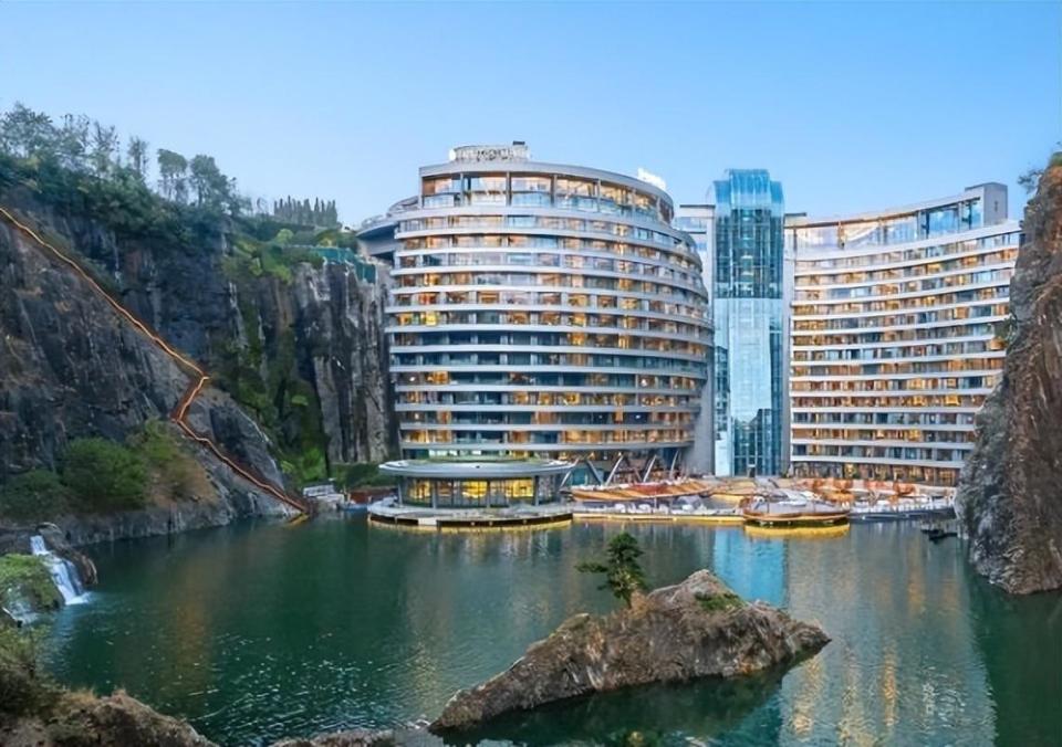 2017年,在世茂集团的房地产业务收入超过千亿元之后,许荣茂、许世坛父子二人带领世茂集团打造出一个令人惊叹的建筑作品——上海深坑酒店(现为上海佘山世茂洲际酒店),深坑酒店项目位于佘山的一个废弃矿坑,它并非建在地表之上,而是下探地表88米开拓建筑空间,依附深坑崖壁而建,是世界首个建造在废石坑内的自然生态酒店,被美国国家地理誉为“世界建筑奇迹”。