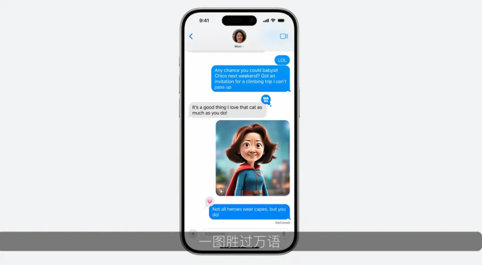最能让用户发挥个人想象力的功能还包括“智能图像生成”。苹果推出了Genmoji(表情生成)功能,支持用户通过自然语言描述生成表情符号;并进一步推出了Image Playground(图像游乐场),能够让用户自选服装、地点、配饰等关键词,在几秒钟内创造出有趣的图像。