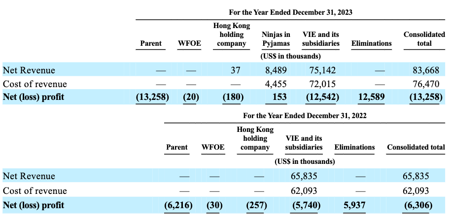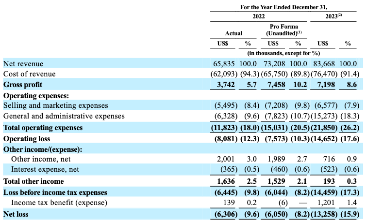 只是这条路能否带领星竞威武摆脱亏损困境,还有待时间的检验。星竞威武人才经纪业务至今仍处于毛亏状态。2022年和2023年,该业务毛亏损分别为90万美元和80万美元,毛利率为-2.3%和-1.6%。