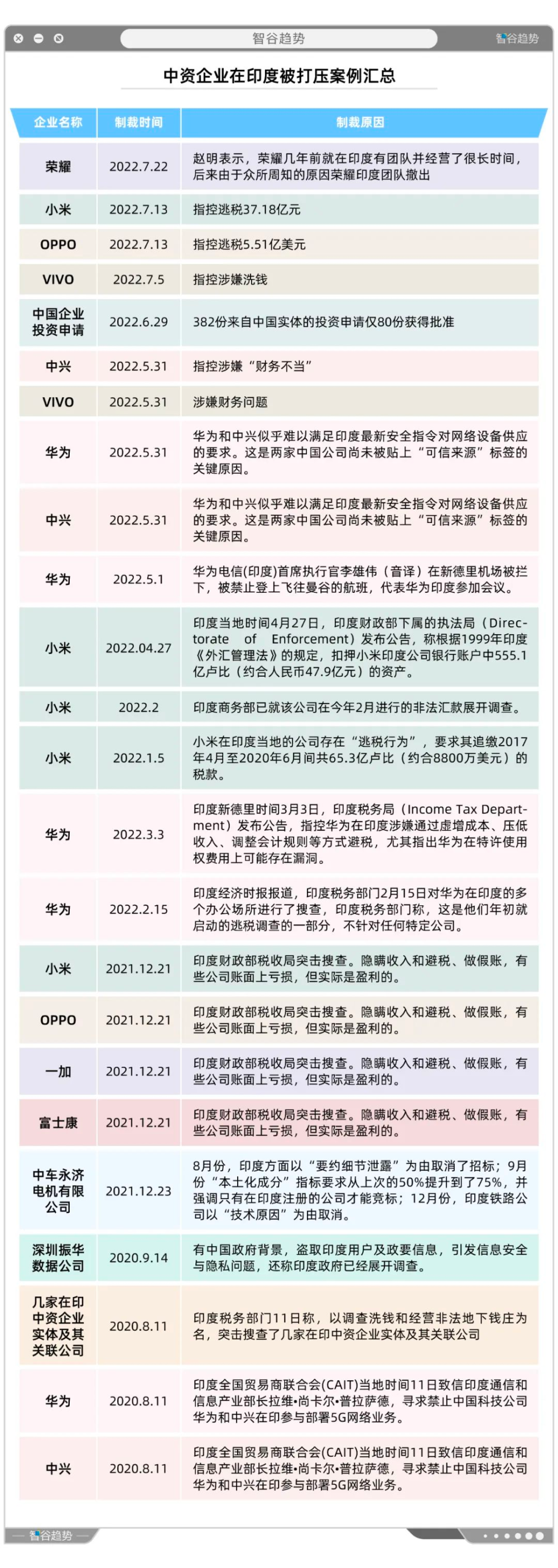 华为、中兴、vivo、OPPO在内的多家手机厂商,都遭到过印度相关部门的调查。