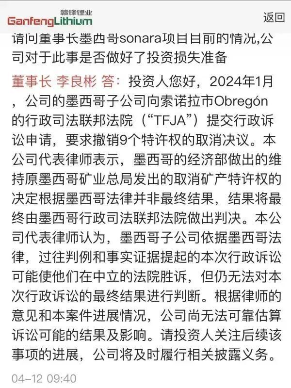 被狠狠宰了一波的赣锋锂业决定和墨西哥死磕到底,夺回属于自己的矿。