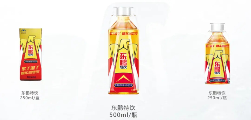 除了广告语外,东鹏饮料还设计了一个超级符号——鹏,这个符号诞生后,每款产品都带会带着“鹏”符号,形成了品牌辨识度。