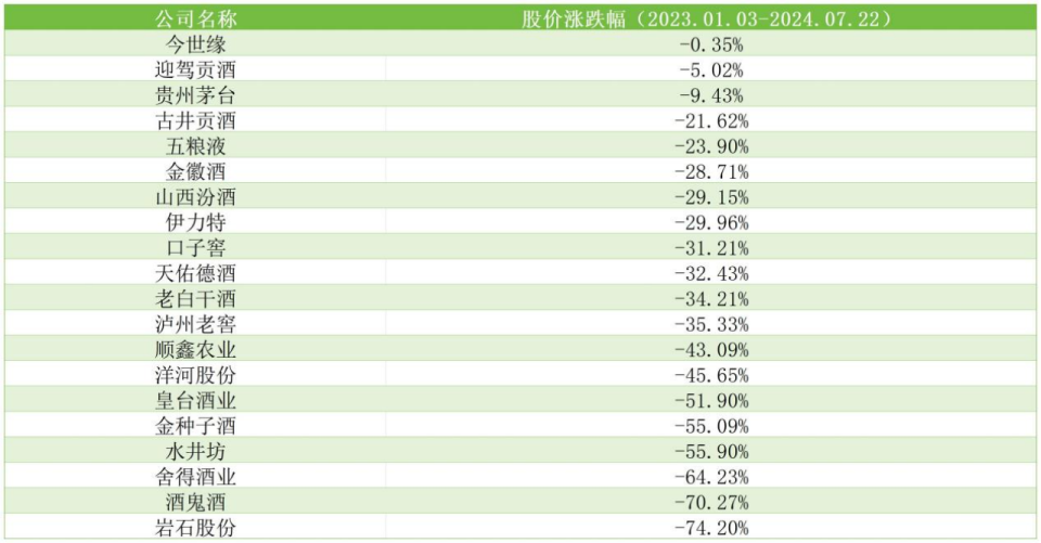 ▲过去一年半,酒鬼酒的股价表现垫底,镁经小组制图