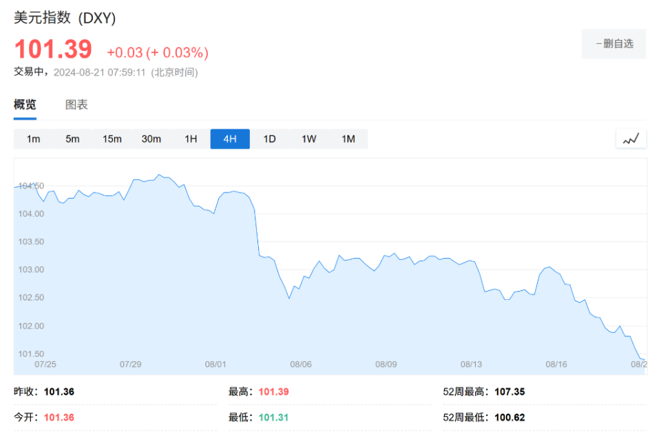 美联储降息预期升温,美元应声下跌,创下年内新低。
