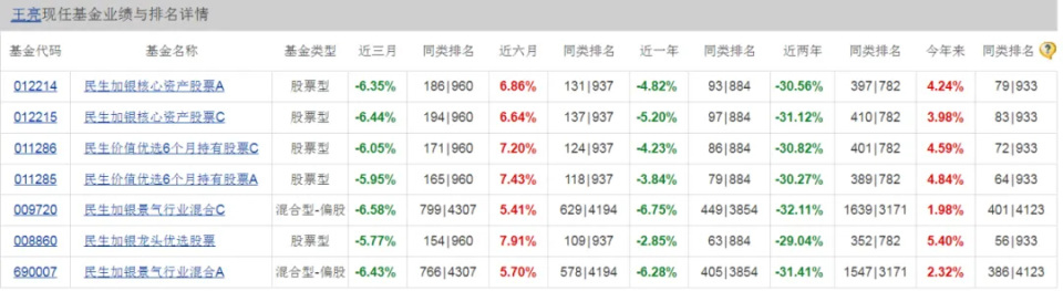 再看王亮,近两年业绩一栏,几乎都亏损30%以上。