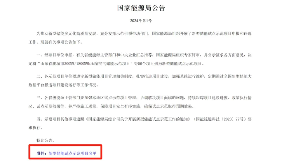 这个公告我在之前分析储能行业的时候也讲过,公告附带了新型储能示范项目名单,总共56个。