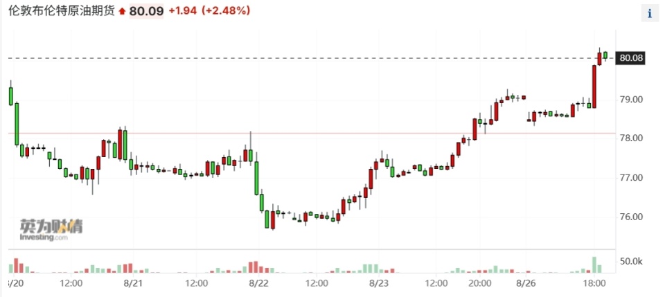 以色列对黎巴嫩南部真主党目标的袭击加剧了中东地区的紧张局势,加之利比亚东部政府表示将停止石油的生产和出口,石油价格一路上涨。周一欧盘时段,布油站上80美元/桶上方,WTI原油则攀升至77美元/桶以上。