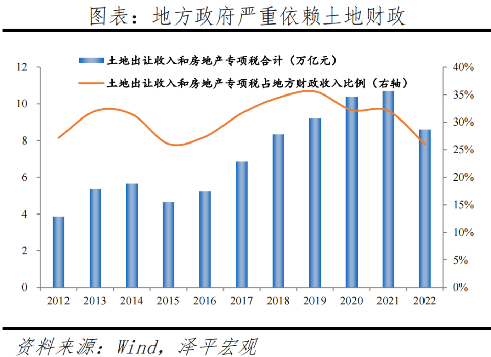从宏观层面看,2022年地方政府与房地产相关收入总额8.6万亿,其中国有土地出让金收入6.7万亿,5个房地产特有税种税收合计1.9万亿。2012-2019年土地出让收入和房地产专项税合计占地方财政收入从27.1%升至35.6%,后降至2022年的26.0%。2022年土地出让收入和房地产专项税占商品房销售额的63.4%。