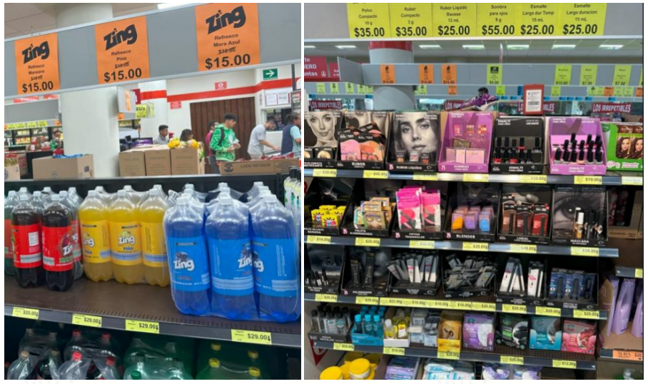 从上述四种情况结合我作为一个消费者的体感,墨西哥城的服务业人工工资大致相当于中国二三线城市的水平,但是整体的消费水平大致相当于美国的50~80%,收入和中档以上消费严重不匹配,贫富差距巨大。这样的零售业态,导致了当地出现了硬折扣领域的巨头公司:Tiendas 3B(美股:TBBB),公司市值约33亿美金,截至23年底在墨西哥有2288家门店,单店300~500平方米,23年收入440亿比索(约170亿人民币)。整体定位是非常廉价的硬折扣门店,低毛利,高周转,从类目上来看,公司以日用品作为主,并且自有品牌占比接近50%,以左下角的饮料为例,上面Zing自有品牌的价格为15比索(约6人民币)而下面的可乐的同款产品为29比索(约11.5人民币);公司23年底整体毛利13%,没有做任何线上化尝试,后续通过供应链和自有品牌,提升毛利率。