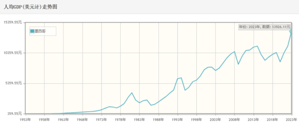 墨西哥市场总计有1.3亿人口,土地面积196万平方公里,人均GDP在2023年达到13900美元;从大致规模上来看,墨西哥的人均GDP跟中国相近(略高一些),人口相当于中国的十分之一;在全世界范围内的经济总量排名全球第12位,在澳大利亚和韩国之前、加拿大和俄罗斯之后,比很多人关注的越南、印尼市场要大很多:一方面,以语言划分,西班牙语在美洲有4.7亿使用者;另一方面,墨西哥人在美国超过3700万,可以向北美和南美洲分别进行延伸。