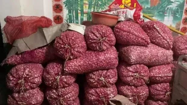 ●爆雷后刘春芳无心卖蒜,堆在了家门口。图/徐巧丽