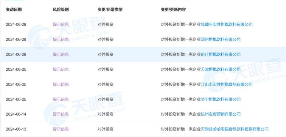 宗庆后去世之后,宏胜集团设立了大量的公司,覆盖生产类、贸易类和营销类。