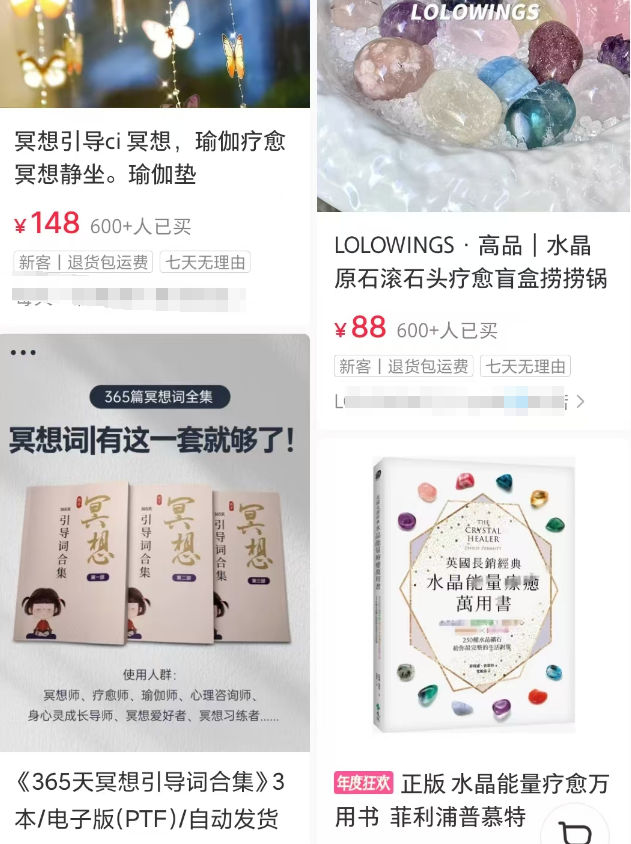 在小红书,与“疗愈”相关的笔记数量高达五六百万篇,平台上的相关商品也多达1万件。
