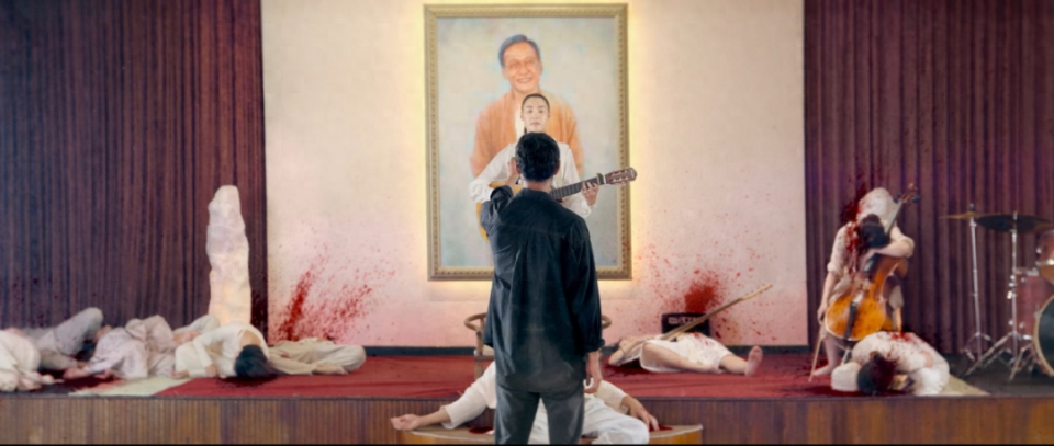 电影《周处除三害》里,灵修院的人一顿忽悠、打坐、合唱,病人们就主动献出全部家产,死心塌地地追随,逼得阮经天饰演的主角最后把他们全给突突了。