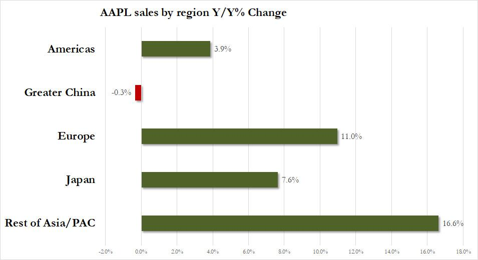 虽说苹果本季在大中华区的营收表现「相对稳定」,但鉴于苹果在其他地区的营收同比均有增长,大中华区的销售收入同比下降就显得格外「显眼」,甚至在分析师的预测之外。