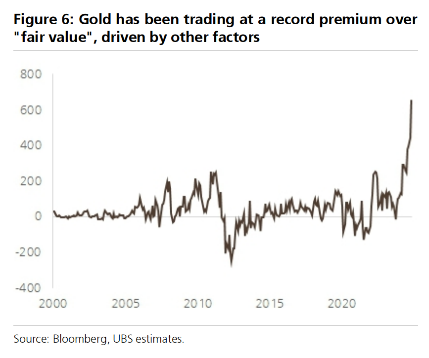 瑞银强调,尽管黄金目前的交易价格相较“公平价值”有较高溢价,但这种溢价可以被合理解释: