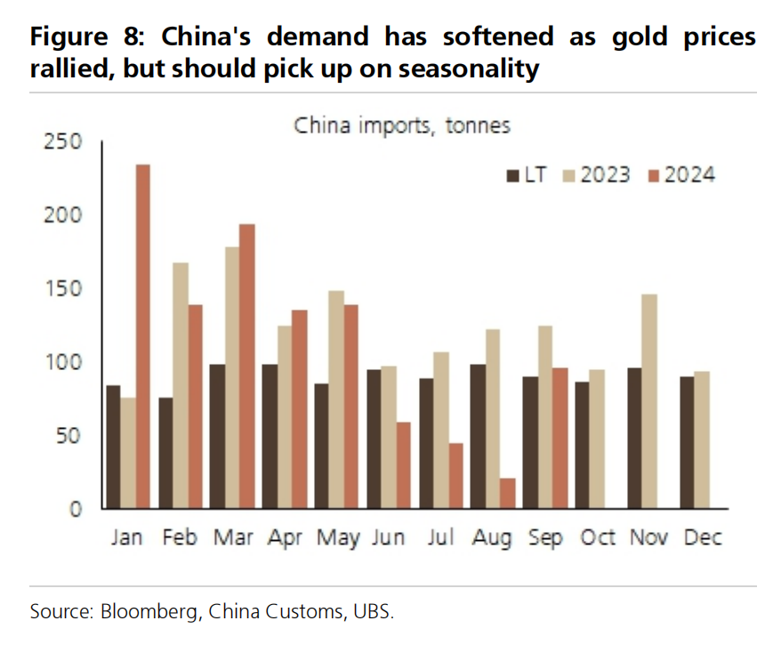 然而,瑞银依旧看好黄金长期表现,认为多元化需求与避险情绪将继续支持黄金上涨,预计到2024年底将达到每盎司2700美元,2025年低价格将刷新历史新高,年终目标价为每盎司2900美元。