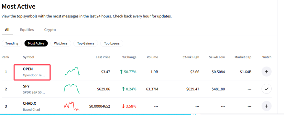 周一,Opendoor再度被列为了Stocktwits上最活跃交易的股票,并且在Reddit的WallStreetBets板块中被大量用户提及。
