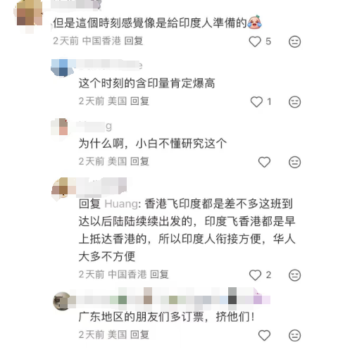 不少常旅客也反馈,经常在香港的赴美航班上,遇到较多印度旅客,“香港-西雅图的航班时刻,也是利好印度旅客中转,香港飞印度差不多这班到达以后陆陆续续出发的,印度飞香港都是早上抵达香港的,所以印度人衔接方便。”