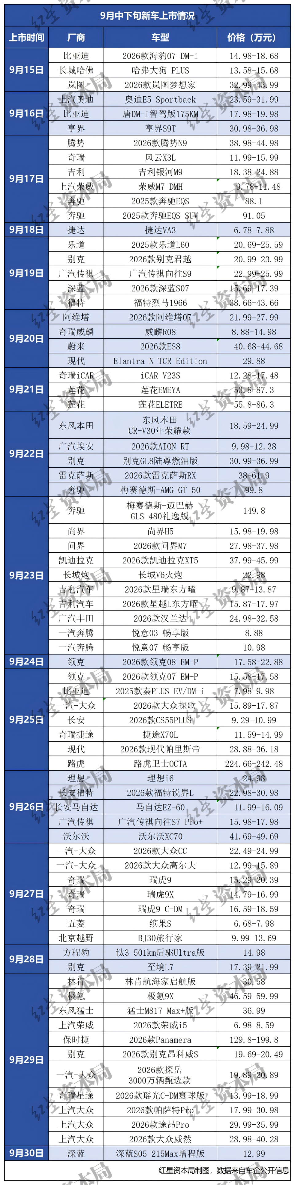 汽车行业分析师刘昊告诉红星资本局,今年9月或为近几年新车上市最多的9月。