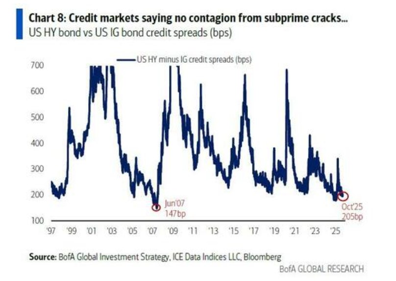 目前,更广泛的信贷市场表现依然平静,多数投资者倾向于将此视为一个孤立事件。但美国银行的策略师Michael Hartnett指出,鉴于高收益债券与投资级债券的利差存在扩大风险,建议进行一些“战术性美元敞口”以对冲潜在的信贷事件。