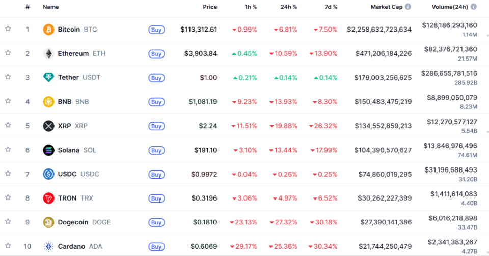美国东部时间10月10日,受特朗普关税威胁影响,加密货币市场大幅下跌。