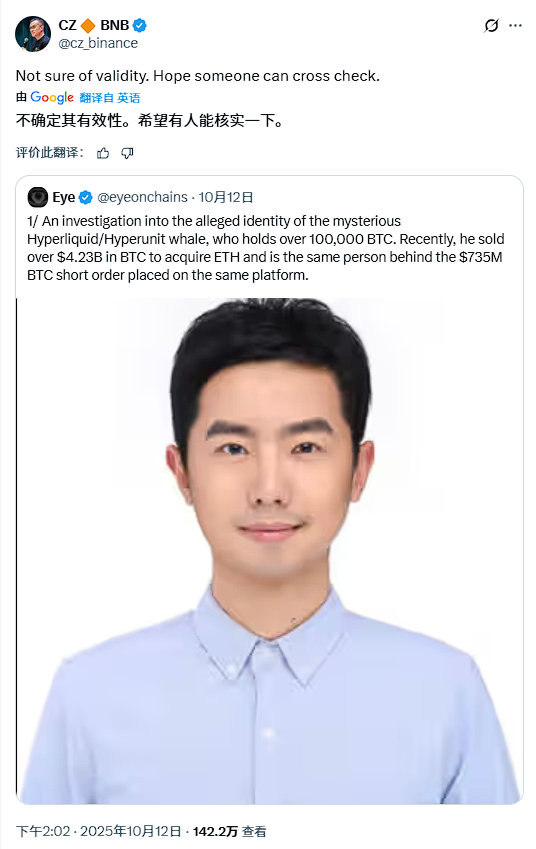 面对市场对这位神秘交易员身份和动机的猜测,币安创始人赵长鹏公开呼吁对相关说法进行核实。他在社交平台X上表示:"不确定有效性,希望有人能够交叉核实。"