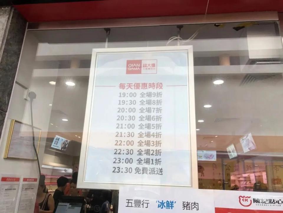 还有钱大妈,在内地就以“便宜”著称,2018年进军香港市场,主打一个接地气:根据不同的时间段进行打折,而且越临近闭店时间,折扣力度就越大。