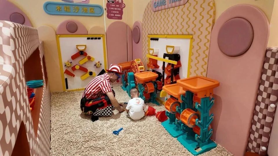 海底捞亲子活动区域,有工作人员在陪伴孩子游玩