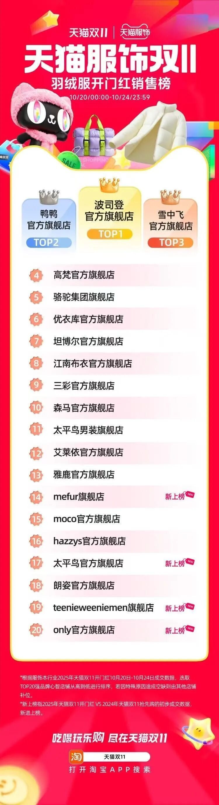 根据2025年天猫公布的双11“开门红”阶段成交数据,高梵官方旗舰店的销量位列羽绒服销售榜第四