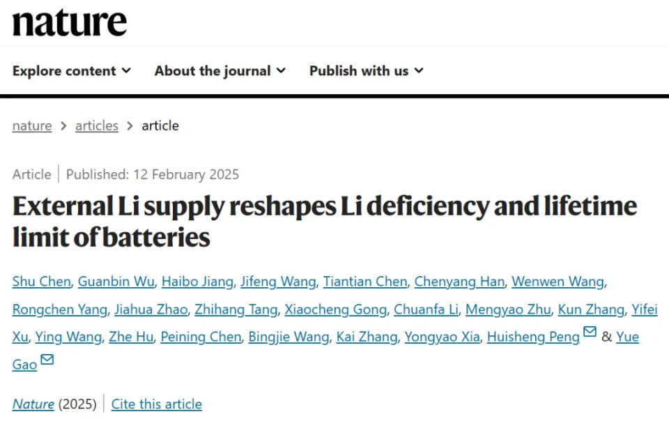 巧合的是,2月12日,复旦大学研究团队在《自然》主刊上发表了《外部供锂技术突破电池的缺锂困境和寿命界限》,更详细地介绍了类似“电池打针”的思路。