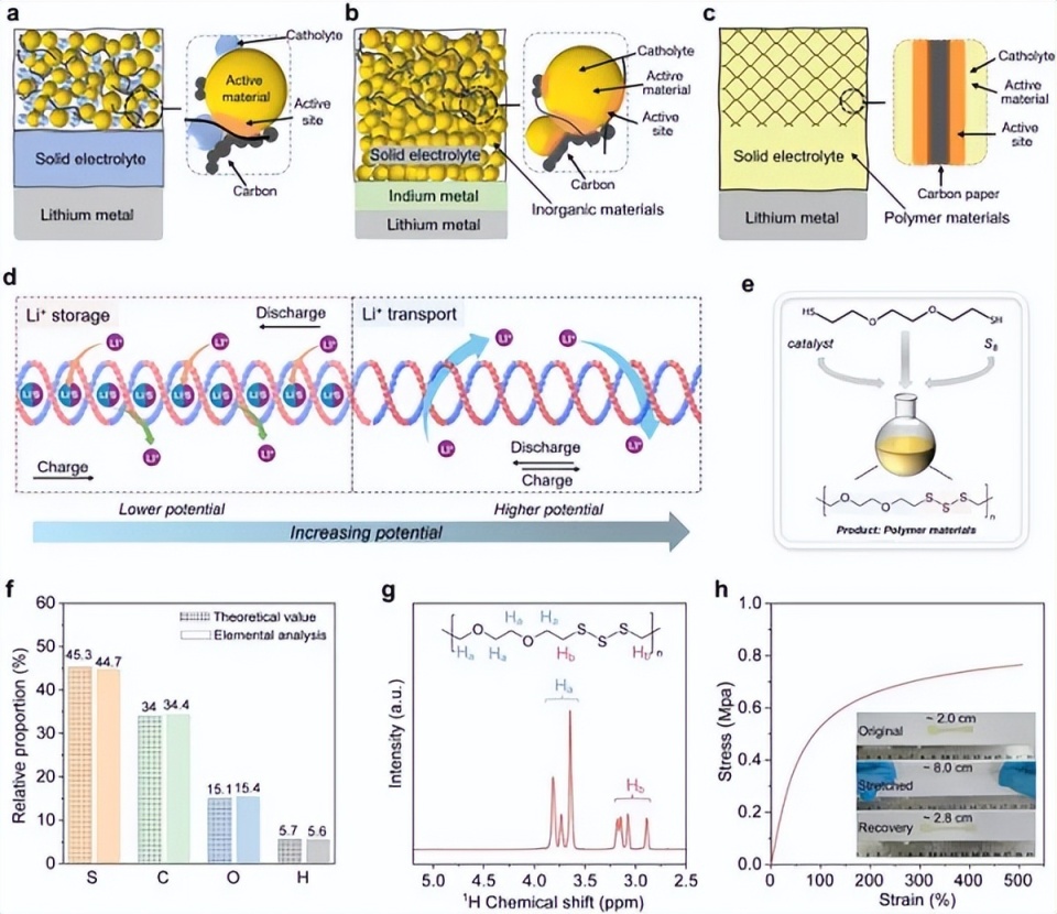 中国科学院金属所团队则利用聚合物分子的设计灵活性,在主链上同时引入具有离子传导功能的乙氧基团和具备电化学活性的短硫链,可以抓取更多的锂离子,能量密度提升86%。基于这种材料构建的电池,可承受20000次反复弯折。