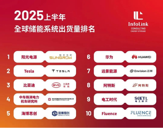 从行业地位看,据权威数据咨询机构标普全球2024年发布的储能系统全球累计装机量排名,阳光电源位列全球第一。从InfoLink 2025 上半年度全球储能系统出货排名来看,阳光电源第一。