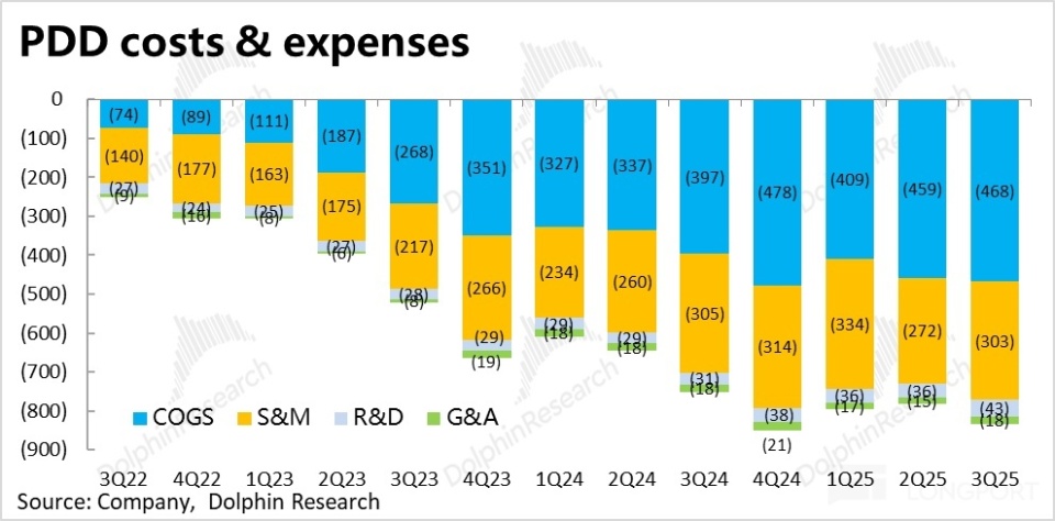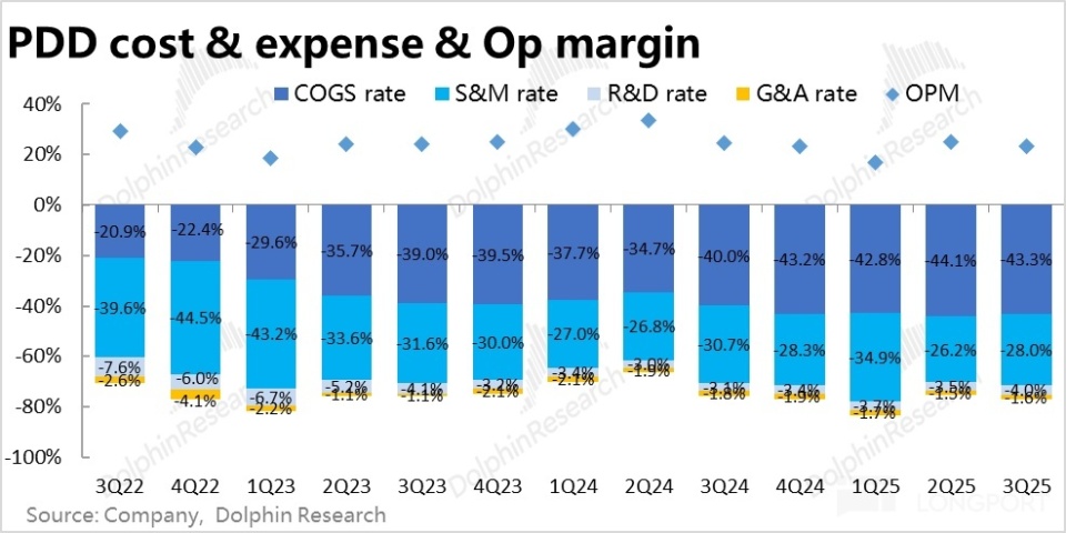 至于管理费用依然受控,本季依然负增长约 3%,依旧体现了拼多多极致的人效比。