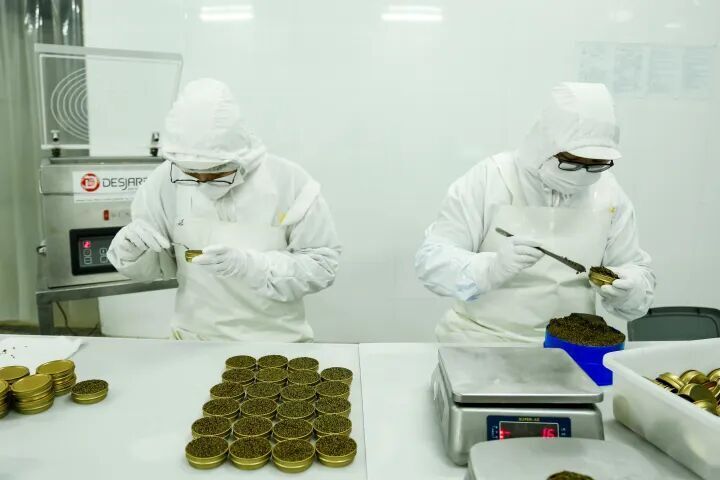 在具体的养殖环节上,鲟龙科技通过人工选育技术和饵料配方的持续改进,使鲟鱼怀卵率大幅提高。在基因鉴别技术的加持下,小鱼养半年、长到0.5公斤左右,就可以分出公母。鲟龙科技还通过“生态网箱+循环水养殖”模式,将鱼子酱加工效率提升至15分钟完成取卵分级,产品获欧盟有机认证。