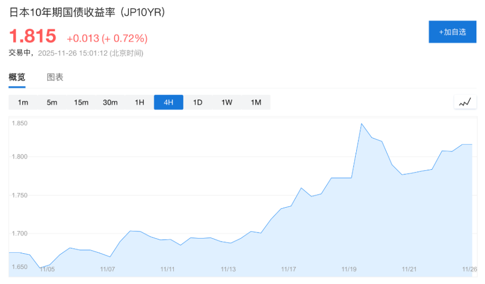 10年期美国国债收益率上升2个基点至4.01%,日本10年期国债收益率升至1.815%
