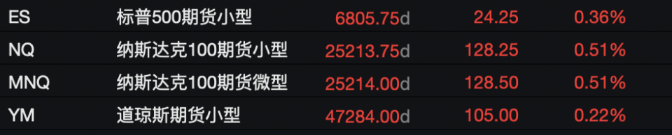 美股指期货集体上涨,标普500期货涨0.36%,纳斯达克100期货涨超0.5%,道琼斯期货涨超0.2%