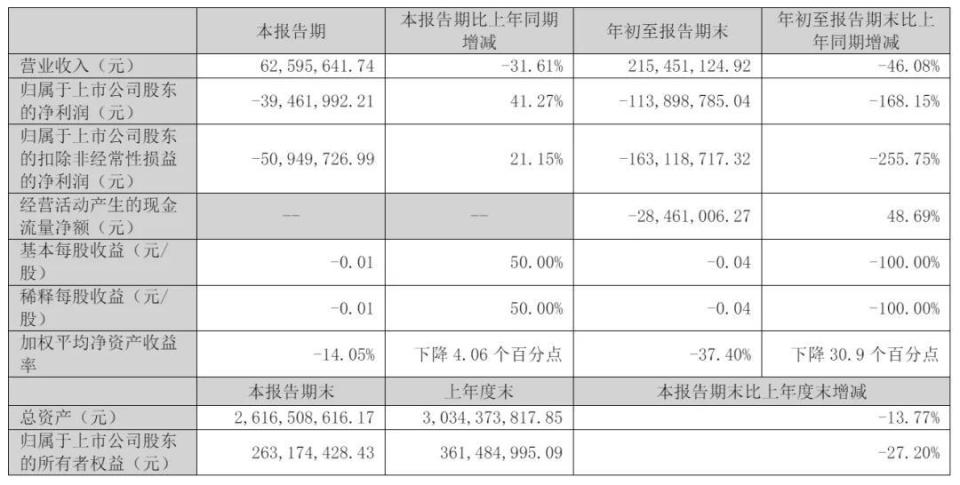 前9个月营收同比降46%
