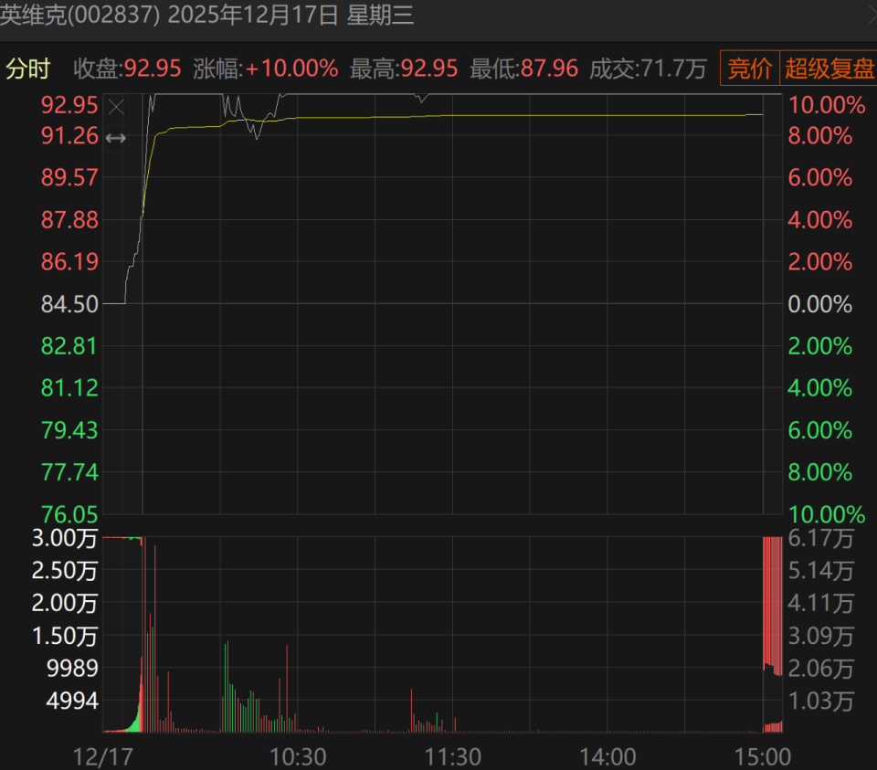 尤其是12月17日,英维克当天高开高走,强势涨停,更是把人气推向了A股全部公司的最前列。