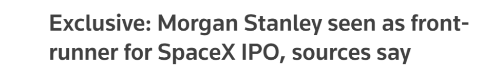 综合外媒消息,据知情人士透露,SpaceX IPO的承销商遴选过程仍在进行中,包括摩根士丹利、高盛、摩根大通在内的几家银行正在竞相争取承销权。