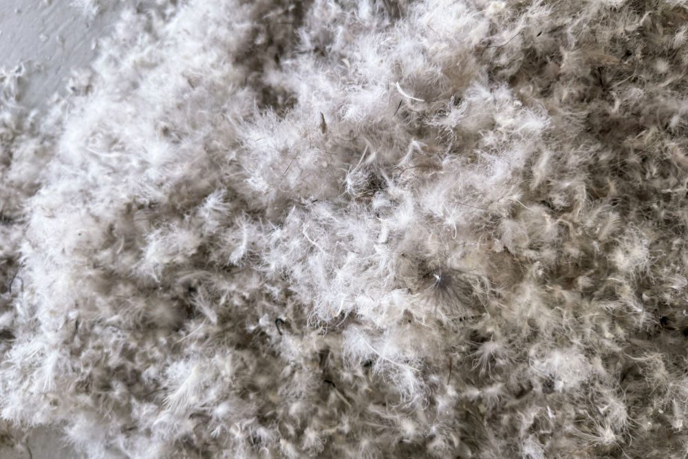 经过机器提纯制成的原料绒,绒朵含量高,变得蓬松。滕焕杰收来的鸭毛出绒率在12%到19%之间,100斤鸭毛可以制成12至19斤原料绒