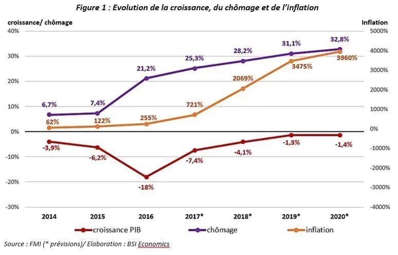 随着国际油价暴跌并持续低迷,委内瑞拉经济遭遇“自由落体式”衰退,真实GDP在2013至2019年间萎缩了约65%,创下和平时期全球最严重的经济衰退纪录之一,人民生活水平急剧下降。