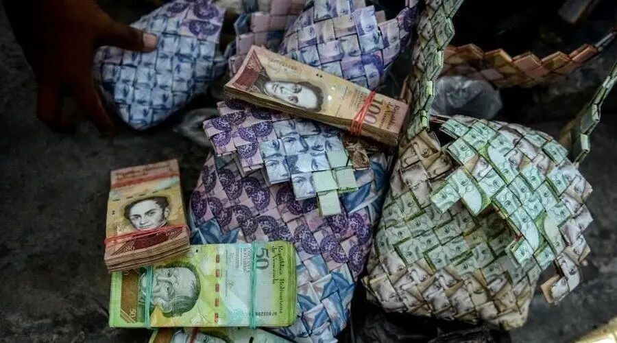 〓委内瑞拉玻利瓦尔钞票因大幅贬值,被穷人用来做成包