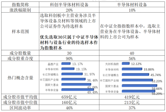 从标的选择上来看,目前市场上聚焦半导体设备的指数有两只,分别是中证半导体材料设备以及科创半导体材料设备指数。前者是科创板中唯一聚焦半导体设备的指数,后者体现行业整体布局,是全市场半导体设备含量最高的指数。(数据来源:Wind,成分行业按申万三级行业划分)