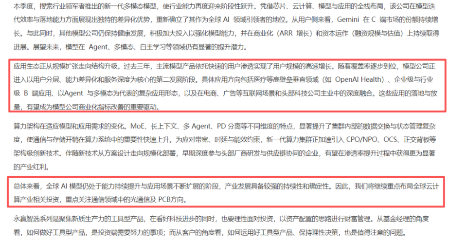 在四季度,他观察到模型在Agent、多模态、自主学习等领域仍有提升潜力。同时,应用生态正从规模扩张走向结构升级。也就是说全球AI模型仍处于能力持续提升与应用场景不断扩展的阶段。
