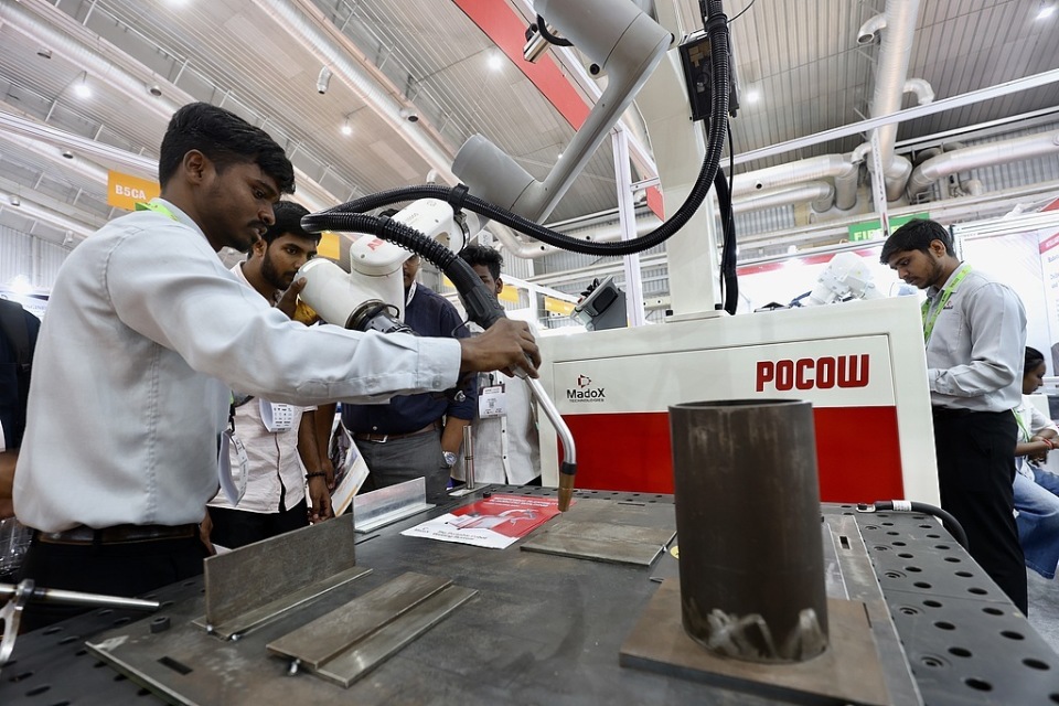 2025年11月6日,印度班加罗尔,人们参观第七届“印度制造业展”。(视觉中国)