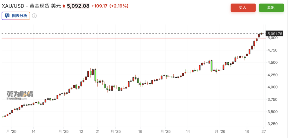 2026年开年至今,国际黄金现货价格从4300美元区间到突破5000美元仅用时三周,涨幅约15%,提前达成华尔街此前设定的全年价格目标。