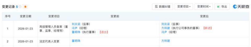 天眼查显示,1月23日,年近72岁的董明珠卸任珠海格力电子元器件有限公司(下称“格力电子”)执行董事、法定代表人职务,并将接力棒交到了效力格力20余年的老将方祥建手中。
