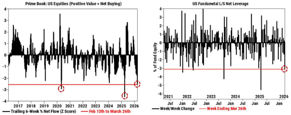 净杠杆率创近一年最大降幅:美国基本面多空净杠杆率本周下降3.1个百分点,创下自2025年4月初“解放日”当周以来的最大单周降幅。